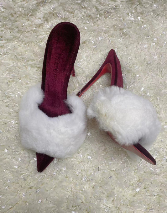 Suede mules with fur